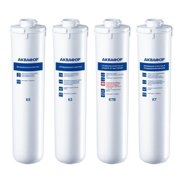 • Комплект сменных модулей глубокой очистки. Оптимален для мягкой воды. В условиях жесткой воды он полностью выполняет функцию глубокой очистки от вредных примесей, однако не снижает минерализацию. Поэтому, если при кипячении на нагревательных элементах образуется белый налет, рекомендуем рассмотреть специализированный комплект с умягчающим модулем для глубокой очистки воды.