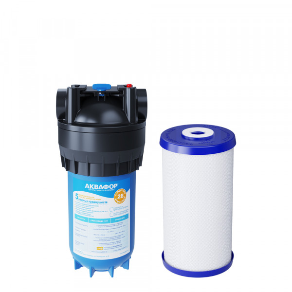 Не забывайте учитывать и срок службы фильтра: он указан в паспорте и определяет, когда модуль нужно заменить, даже если ресурс активной фильтрации в литрах еще есть.30000СорбцияСпособность “впитывать” из воды растворенные, “невидимые” вредные примеси, по принципу губки. Активированный уголь - основной сорбционный материал, который используется в картриджах фильтров для питьевой воды. Например, именно так из воды удаляется хлор.даСкорость фильтрации, л/минСкорость подачи отфильтрованной воды из крана чистой воды на мойке. Например, при скорости фильтрации 2,5 литра/минуту стакан 200 мл. наполнится меньше, чем за 10 секунд.10,0КомплектацияГотовый фильтр состоит из корпуса и картриджа для очистки воды. Если вы приобретаете только корпус, необходимо отдельно купить подходящий к нему картридж: это может быть картридж для механической очистки воды от ржавчины, картридж для глубокой очистки воды от хлора.готовый фильтрВодаКартриджи и корпуса фильтров рассчитаны на определенную температуру воды. Данные технические характеристики важно учитывать, поскольку от этого зависит качество очистки и срок службы фильтра.холоднаяМатериал корпусаПищевой пластик: Допущен к контакту с пищевыми продуктами. Нержавеющая сталь: Долговечный и безопасный корпус из нержавеющей пищевой стали.пищевой пластикОчисткаМеханическая очистка: Задерживает ржавчину, ил, песок, как “сито”. В корпусе предфильтра с механической очисткой установлен полипропиленовый модуль. Глубокая очистка: Подходит, чтобы купать детей в чистой воде. Делает прием душа и умывание более приятным. Фильтр глубокой очистки воды во всей квартире не только останавливает ржавчину, ил, песок, но и впитывает растворенные опасные примеси, как губка. Удаляет из воды хлор, хлорорганические вещества, пестициды и другие загрязнители.глубокаяДля холодной водыда